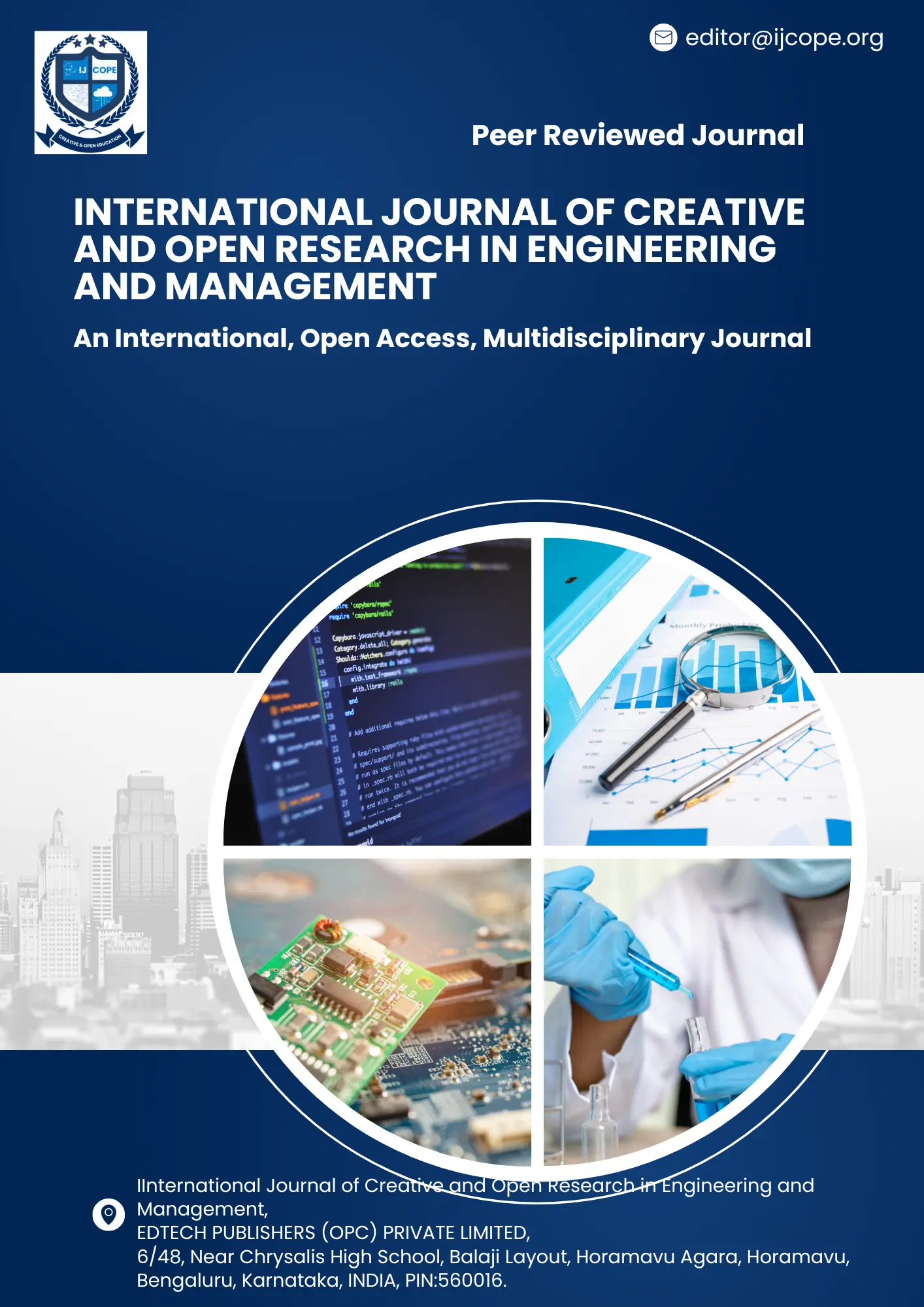 The International Journal of Creative and Open Research in Engineering and Management (IJCOPE) is a pioneering open access, international, and multidisciplinary scholarly journal committed to advancing innovation, research, and knowledge dissemination in the fields of Engineering and Management. IJCOPE provides a global platform for the publication of high-quality, peer-reviewed research that bridges theory and practice, fosters creative problem-solving, and supports open collaboration to address real-world challenges.
